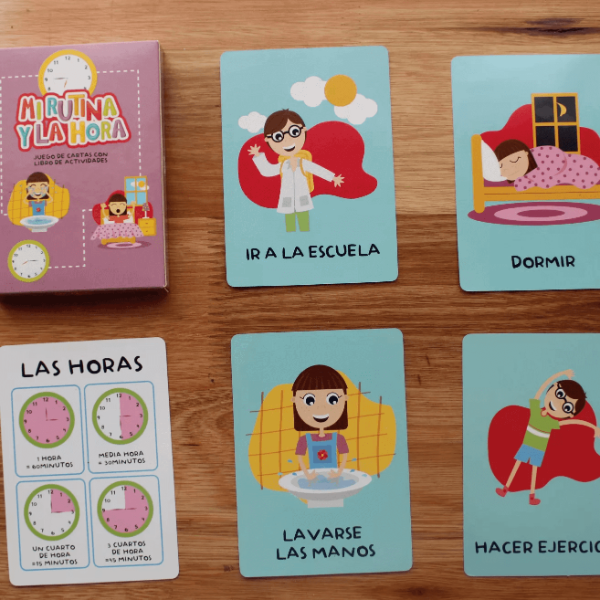 Las cartas tienen un tamaño más grande que el de un naipe común, lo cual resulta muy atractivo para los niños y muy útil para enseñar en grupos.