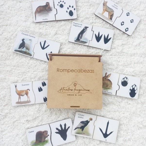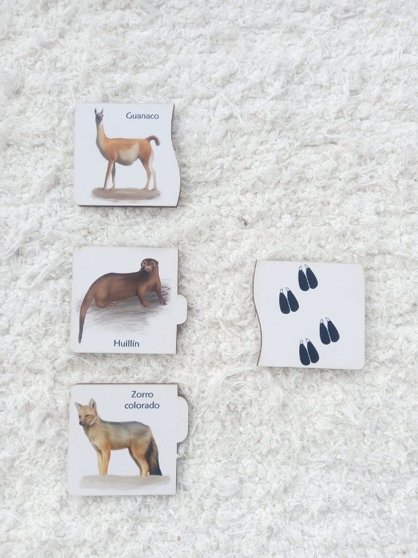 16 piezas (8 animales y 8 huellas) en mdf laminado