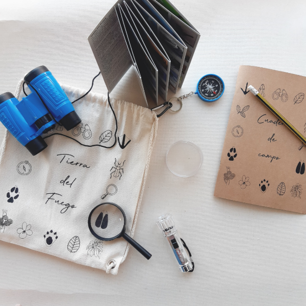 Mochila de Lienzo con todo los elementos necesarios para salir a explorar los campos fueguinos:
