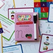 Juego de cartas con grafismos, abecedario y números marcados para iniciarse en la escritura. Cada carta esta laminada para poder usarse todas las veces que se desee. Lxs niñxs siguen las líneas punteadas usando el marcador y forman letras, números y formas.