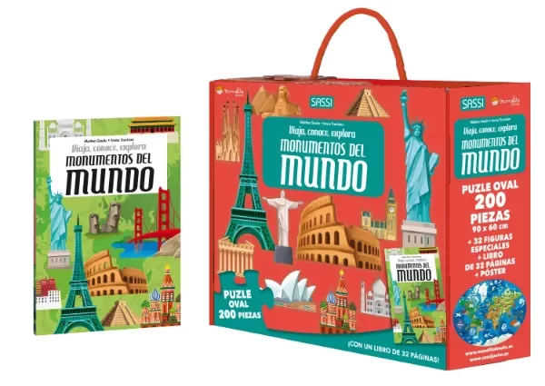 A lo largo de milenios, el hombre ha construido monumentos de extraordinaria belleza, que se han convertido en verdaderos símbolos de naciones y civilizaciones conocidas y admiradas en todo el mundo. Torres, palacios, anfiteatros, antiguas pirámides y modernos rascacielos cuentan una larguísima historia y son testigos perennes del ingenio humano. Un nuevo título de la exitosa serie Viajar, conocer, explorar que ilustra muchos de los monumentos reconocidos por la UNESCO como Patrimonio de la Humanidad, estimulando el aprendizaje de la geografía gracias a las pegatinas del puzzle.
