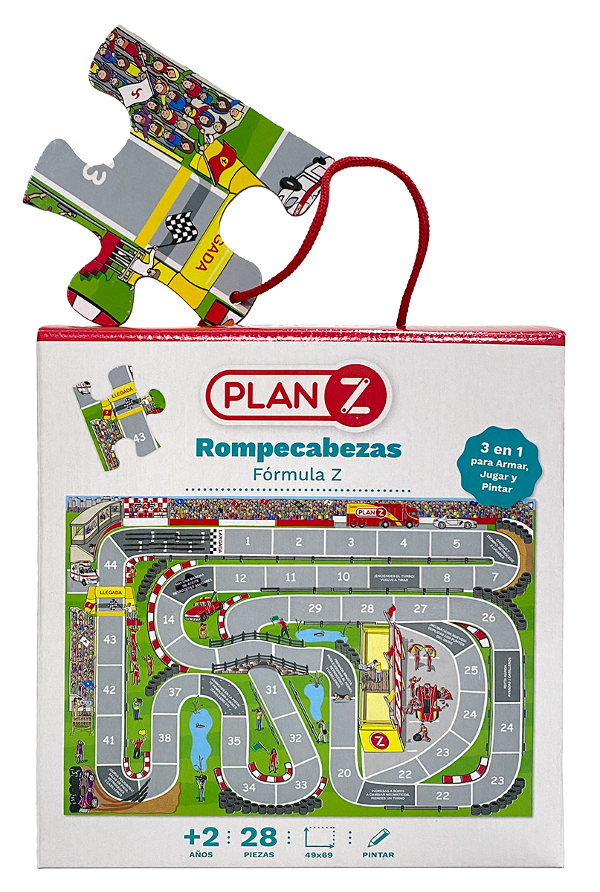 Incluye 28 piezas de cartón extra gruesas + crayones + dado y autitos en Goma Eva para la carrera.